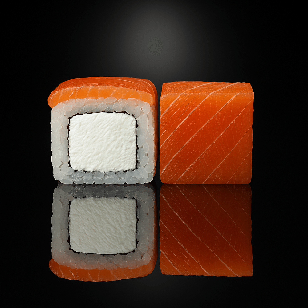 Рис, водоросли нори, сливочный сыр, лосось