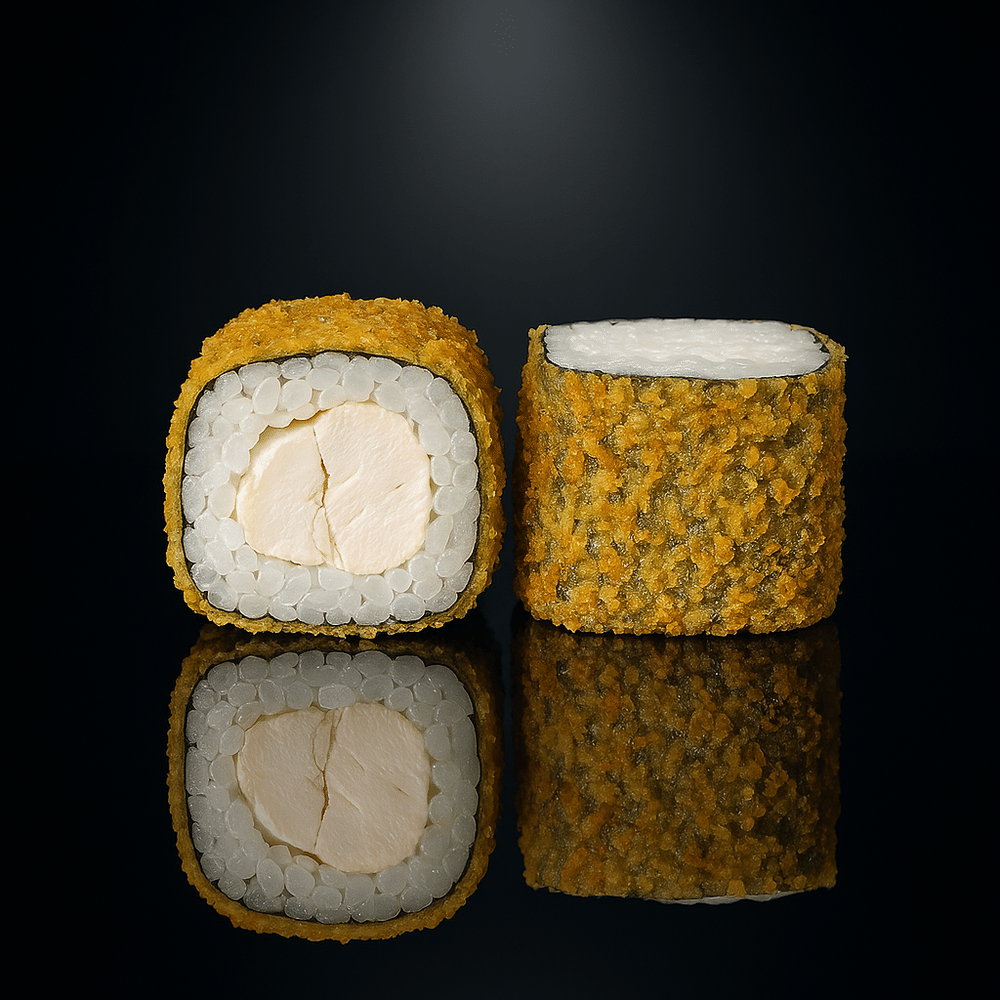Рис, водоросли нори, курица копчённая,кляр, сухари панировочные
