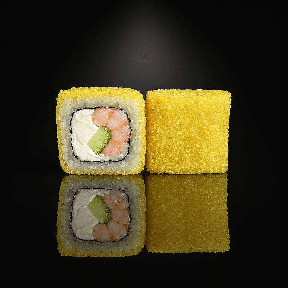 Рис, водоросли нори, креветка тигровая, огурец, сливочный сыр, кляр, сухари панировочные