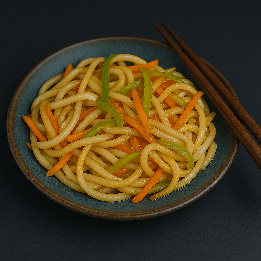 Лапша удон, репчатый лук, капуста, болгарский перец ,морковь, соус на выбор