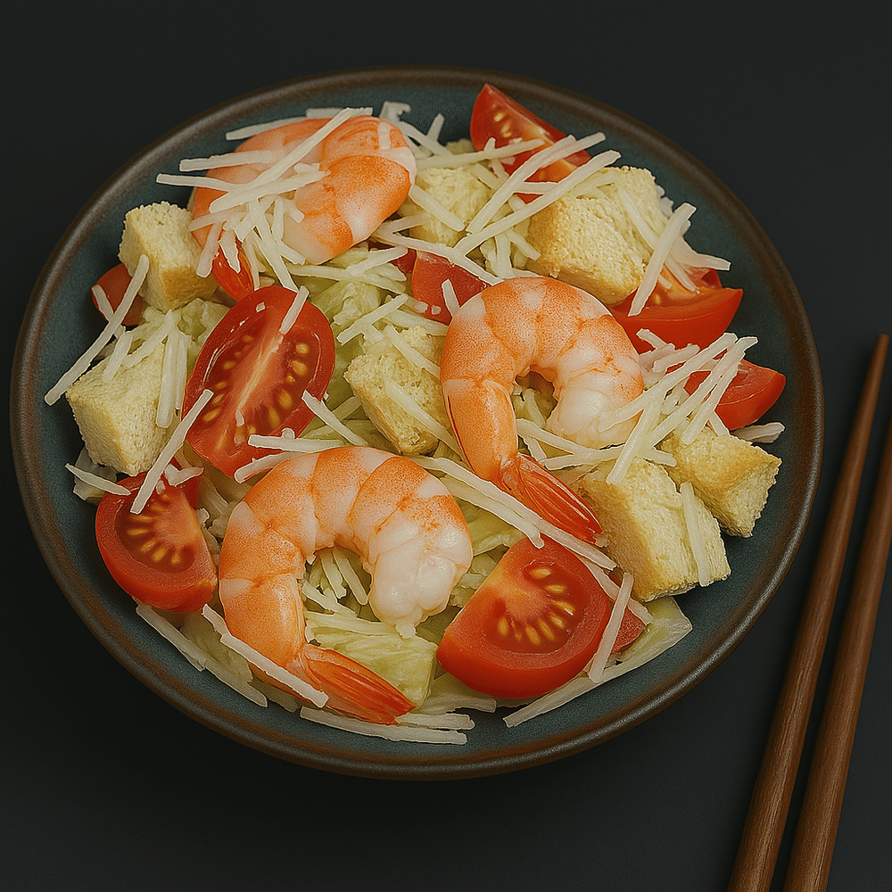 Салат Цезарь с тигровой креветкой